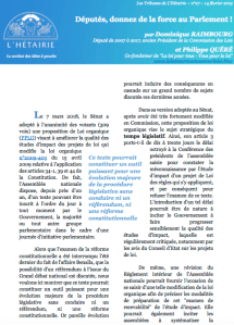 Et une telle modification ne nécessite ni référendum ni réforme Constitutionnelle. Il suffit aux députés de se saisir et d’amender une proposition de loi organique que le Sénat a voté il y a quelques mois !