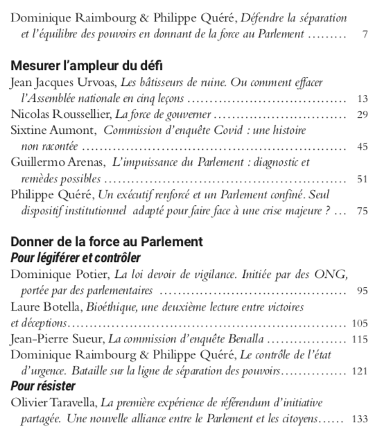 Il recense dans le fonctionnement quotidien de nos institutions les obstacles et les empêchements faits au Parlement. Il décrit les stratégies des parlementaires pour exercer pleinement leurs prérogatives. Il identifie les perspectives d’espoir qui seront les combats de demain.